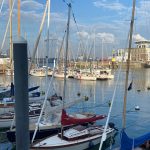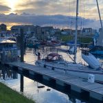 Det var spännande att gå in i den trånga kanalen, vara i slussen som enda båt och lyftas upp fem meter, för att sedan gå längst in i kanalen bland alla fiskebåtarna. Vi fick en långsida på pontonbrygga C och pustade ut från dagens seglats.